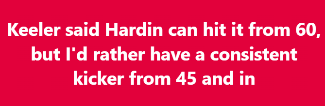 Damn good, coached by the winningest active head coach in football, K.C. Keeler. This week we learned coach Keeler reads TFF because he opened up Monday’s press conference by saying “there was no conspiracy to get Hunter Smith a touchdown.” (That was the subject of our Saturday night post, although we used the word “reward” and not conspiracy. No other analysis of the game brought up the Hunter Smith subject other than this space, so thanks K.C. for the shoutout.)