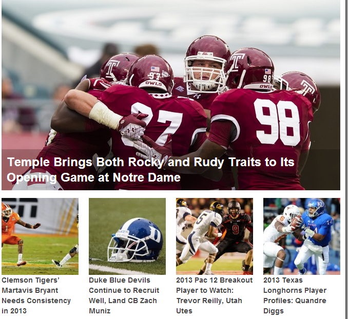 Today, my story on the Temple at Notre Dame game led the national Rantsports.com website.