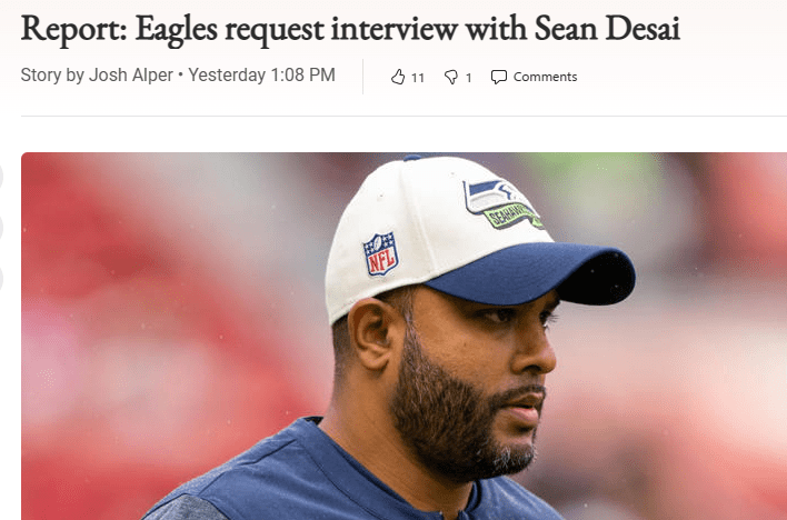 He is a disciple of Vic Fangio, who probably would have gotten the job had he not accepted the same position with the Miami Dolphins recently. Fangio is generally considered the best defensive mind in the NFL and Desai would bring all of those principles to the Eagles with the added benefit of youth.