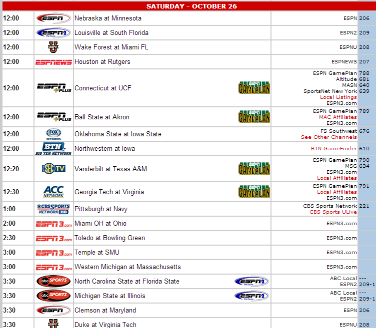 Early TV. Unfortunately, we get UConn-UCF  on Channel 6 instead of RU-Houston.