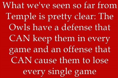 What we’ve seen so far from Temple is pretty clear: The Owls have a defense that CAN keep them in every game and an offense that CAN cause them to lose every single game. They have an attacking defense and a predictable offense. Putting some unpredictability into that offense should be a feature of Thursday night’s game plan.