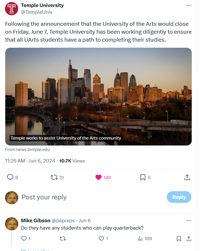 Had to laugh at one of the responses to my last post demanding do better in football. He responded saying that college football has devolved into a transactional business and that Temple football can’t compete because it can’t match the transactions.
