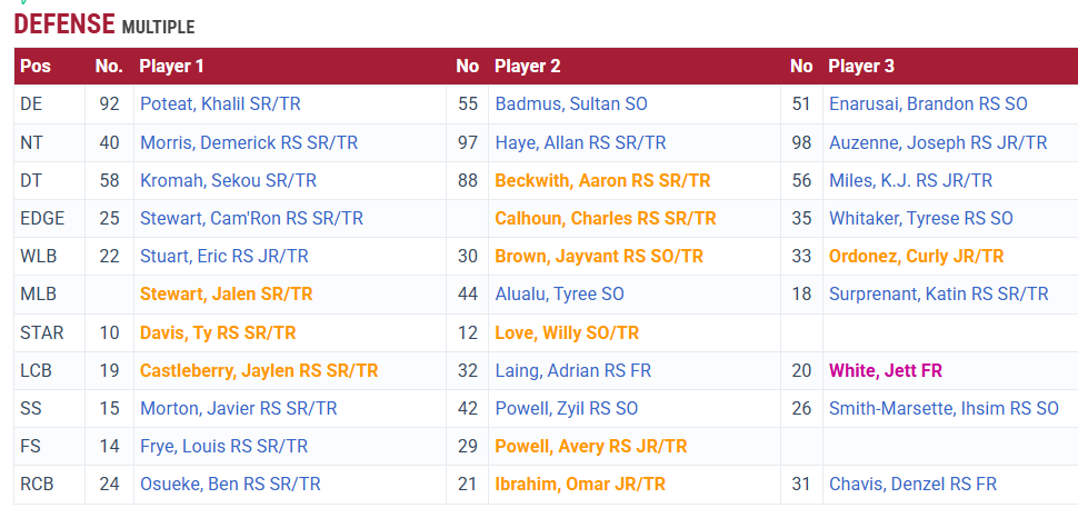 Pretty good summary of the defense, but would flip Badmus and Poteat and we understand Ordonez is moving up the depth chart fast.