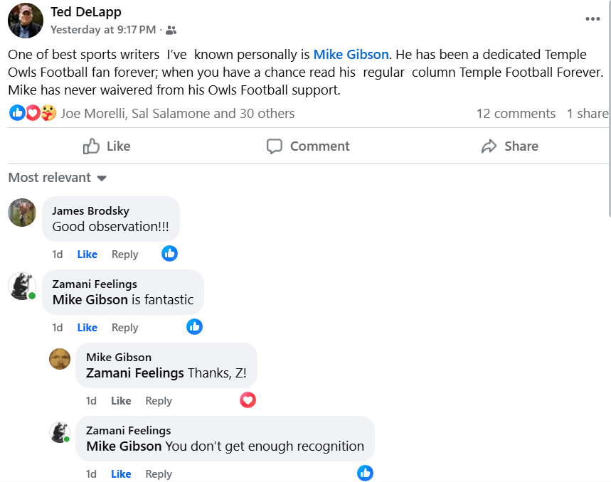 Then came home to this post from in my mind the greatest single Temple football fan I’ve ever known: Ted DeLapp: