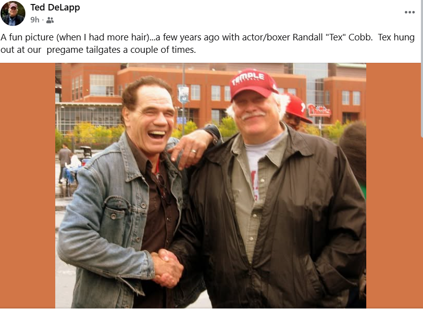 We hit a low ebb in Temple fandom at the end of the 2004 season when Ted, me, heavyweight fighter Randall “Tex” Cobb, Rick Gabe, Fred the Owl Club President, and a couple of other Temple fans were the last remaining tailgaters in an empty Lot K. While there were more Miami fans than Temple ones that day, always felt that if we were unfortunate enough to get in a fight with them, Cobb could take on five or six by himself. Punching back was something the team wasn’t doing, but the few fans left always were.
