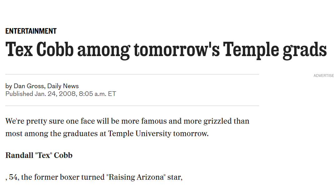 Finally, after being a punching bag for the last six years, Temple is showing signs of punching back. If Tex Cobb is still watching the Owls, our guess is that he will be smiling.