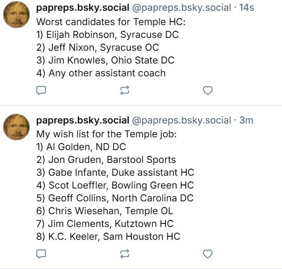 As long as that Philly guy is a proven winner as a head coach with recruiting connections within the footprint of Temple and not the buddy of the other Philly guy, Temple has a chance to succeed again in football.