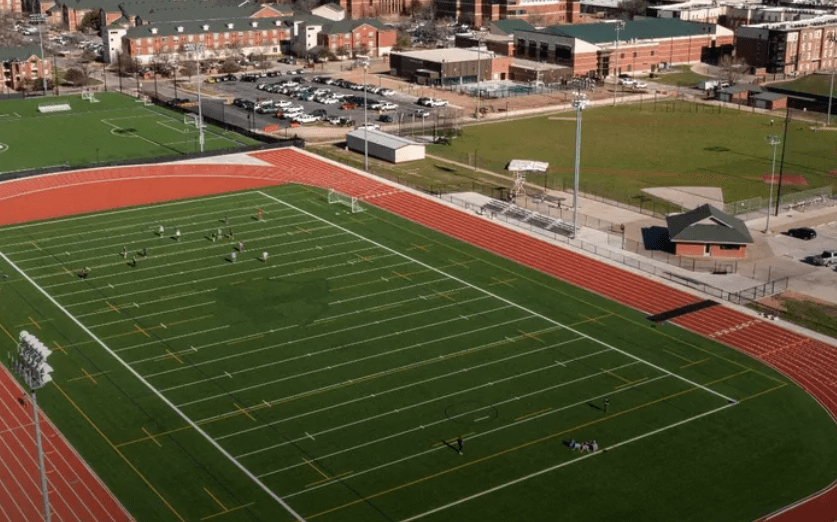 This is the Tarleton State practice facility (note that tiny building is where the locker room and weight room is).