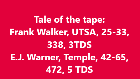 If UTSA lets a team like that hang around with it, that bodes well for Temple. Temple has to sell out to stop the run because Robert Henry Jr. is the leading rusher in the country, but TU DC Brian L. Smith understands that a lot better than we do so we think that will be part of the gameplan. He understands a lot about UTSA and has beaten them before at Rice, something UTSA head coach Jeff Traylor acknowledged this week.