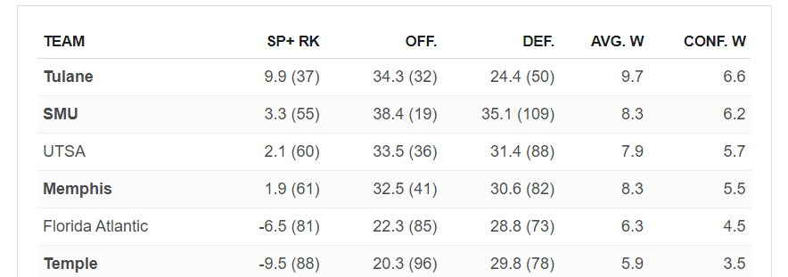 The in-between part–where I kind of think the truth lies–belongs to ESPN and numbers cruncher extraordinaire Bill Connelly, who has the Owls tabbed for sixth.