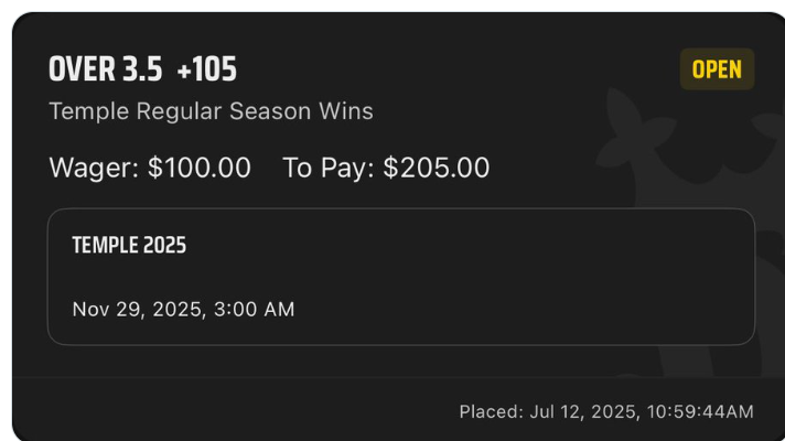 When challenged by a poster on OwlsDaily.com about that way back in July, I put my money where my mouth was and bet the over 3.5 wins.